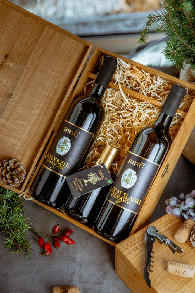 Ekološka vina Brič so odlična izbira za darilo ob različnih priložnostih. Za vas smo pripravili pester izbor darilnih kompletov v elegantni leseni embalaži, ki združujejo prefinjenost, kakovost in pristnost našega posestva. Komplete lahko oblikujete po svojih željah ali pa izbiro prepustite nam – z veseljem vam svetujemo pri sestavi in izboru vin, ki bodo najbolje ustrezala obdarovancu ali priložnosti.