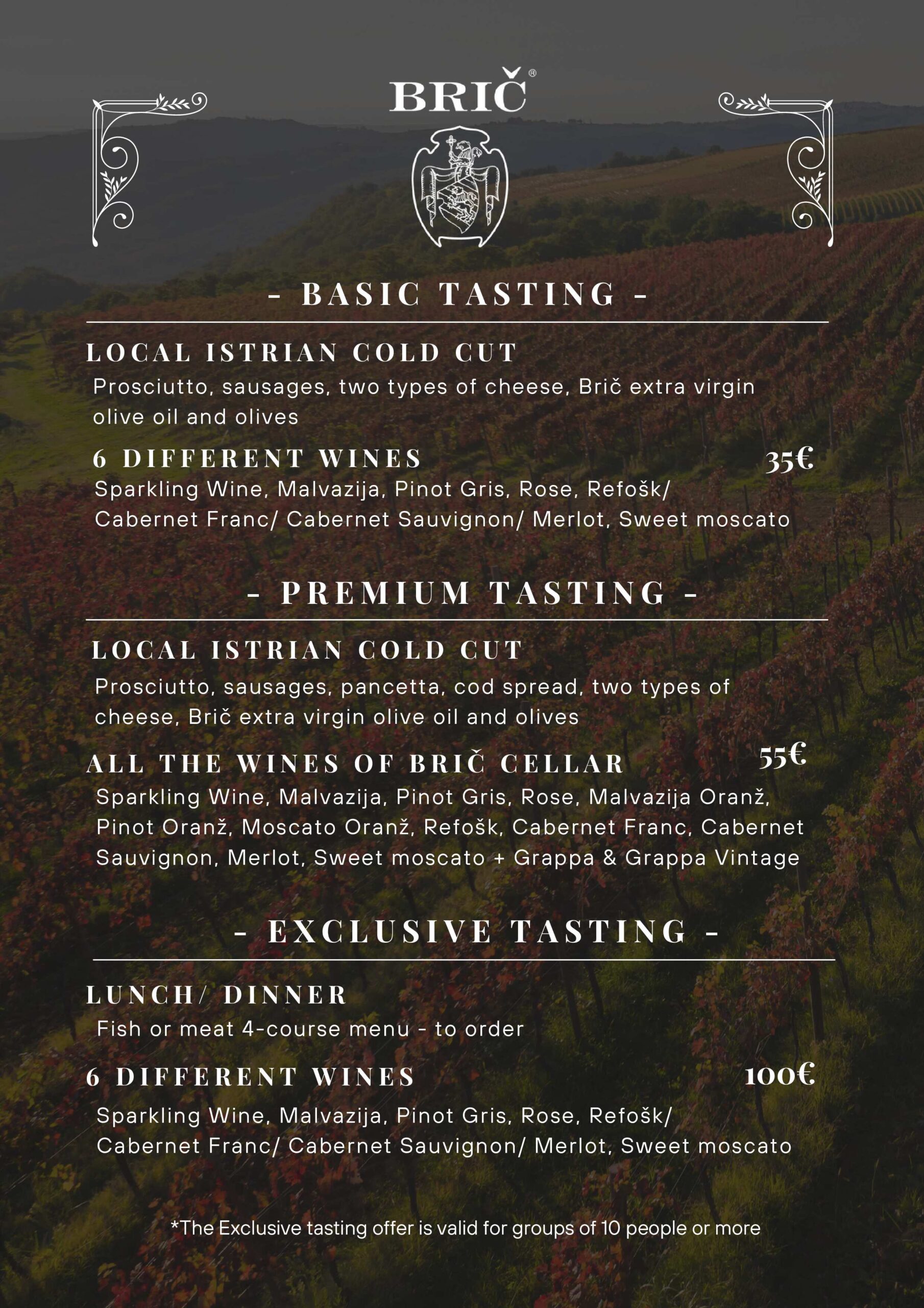 Brič Winery is ranked among the 100 most beautiful wineries in the world. In a setting where tradition meets modernity, we offer guided tours of the estate and cellar, expert-led tastings of premium wines, and the organization of various events.